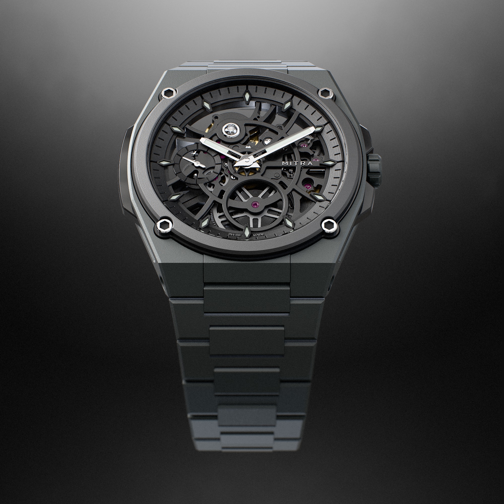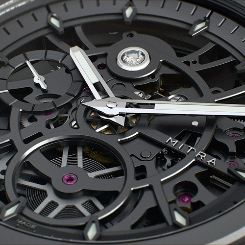 Cadran squeletté avec ponts traités anthracite.